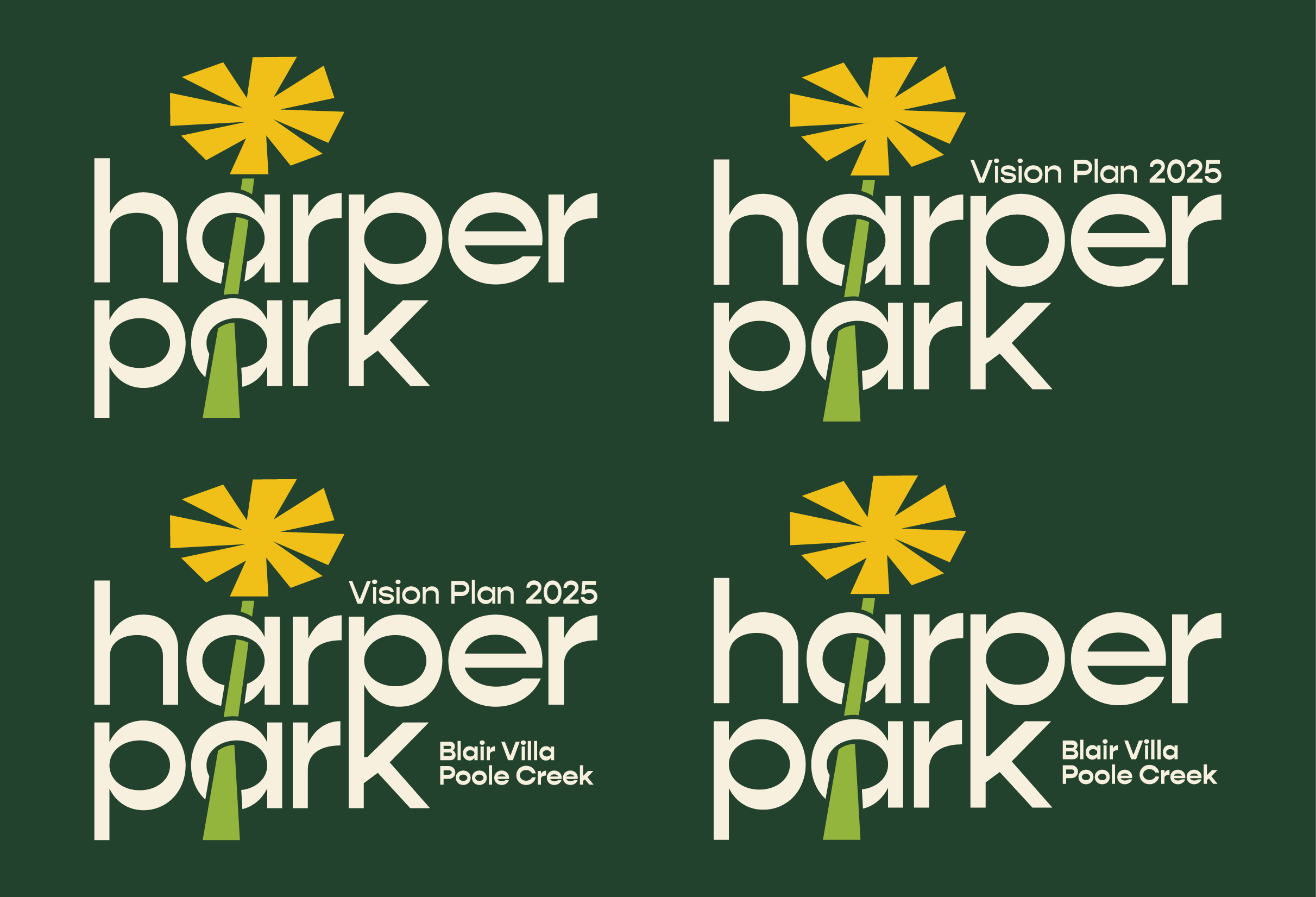 Harper Park is a neighborhood park in the Blair Villa/Poole Creek community, reimagined through a brand identity that supports both the space itself and its long-term vision. The identity reflects the park’s role as a true community hub—rooted in local character and shaped in collaboration with Park Pride.