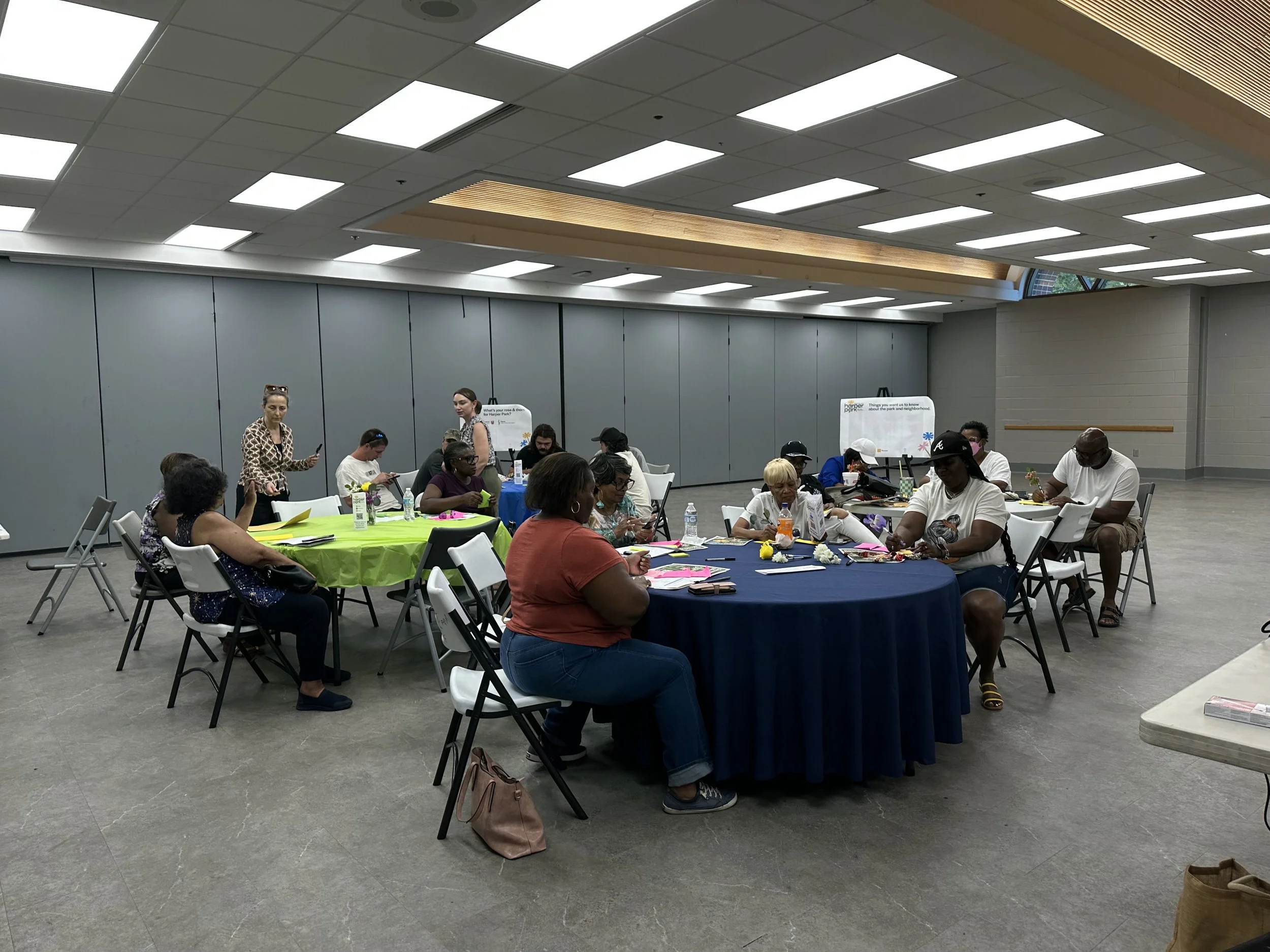 After our committee meetings with community leaders, we opened the process to the wider neighborhood with the first public meeting at the Rosel Fann Recreation Center. Residents from across the area came together to learn about the project, share feedback, and take part in the visioning process. We presented the branding work alongside other elements of the plan, creating space for people to respond, offer input, and help shape an identity that truly reflected the community.