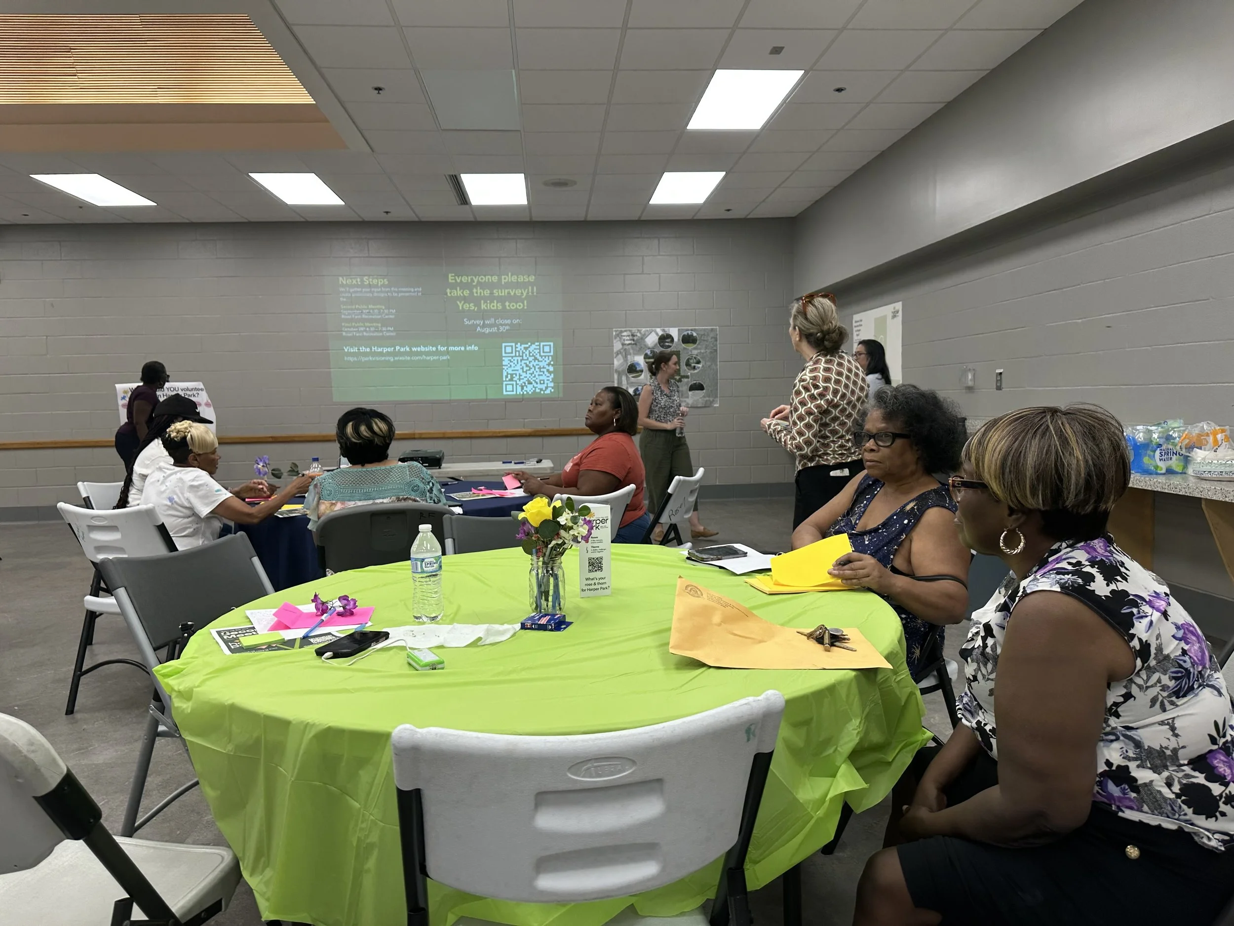 Community research for Harper Park began with conversations and meetings that brought residents and leaders into the process early. We started with small committee sessions to hear directly from community leaders about their priorities for both the branding and the park’s vision plan. These insights shaped the direction of a larger public meeting, where broader input was gathered. Beginning with leadership voices and then widening the circle created a foundation rooted in both guidance and collective input.